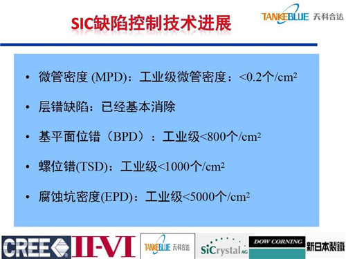 目前工業(yè)級(jí)碳化硅襯底微管密度小于0.2個(gè)/cm2,層錯(cuò)缺陷基本消除,基平面位錯(cuò)工業(yè)級(jí)襯底小于800個(gè)/cm2。經(jīng)預(yù)測,2019年碳化硅襯底市場約為3.5億美金,主要包括電力電子和微波領(lǐng)域,加上LED等其他領(lǐng)域應(yīng)用,大概為8億美金。