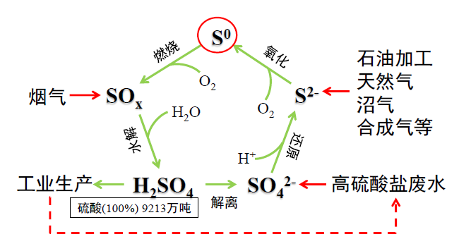 化學(xué)原料與制品、石化、醫(yī)藥、農(nóng)藥、染料化工、焦化、造紙等生產(chǎn)過程,硫及其硫的不同形式產(chǎn)物被廣泛應(yīng)用,目前我國每年消耗硫酸超過1億噸,硫酸鹽廢水排放體量巨大,工業(yè)生產(chǎn)過程每年產(chǎn)生大量的SO2,這些物質(zhì)最終以不同的形式硫進(jìn)入生產(chǎn)廢水和固廢中。其中含硫廢水是最主要的硫污染源,這類工業(yè)廢水有機(jī)污染物濃度高、產(chǎn)生量大、污染物組分復(fù)雜,廢水中含有多種難降解化學(xué)物質(zhì)和毒性物質(zhì),廢水難生化降解。