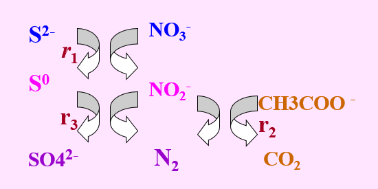 同步除碳脫氮脫硫體系:由硫酸鹽還原、碳氮硫同步脫除和硝化三個(gè)階段組成(圖2-6)。