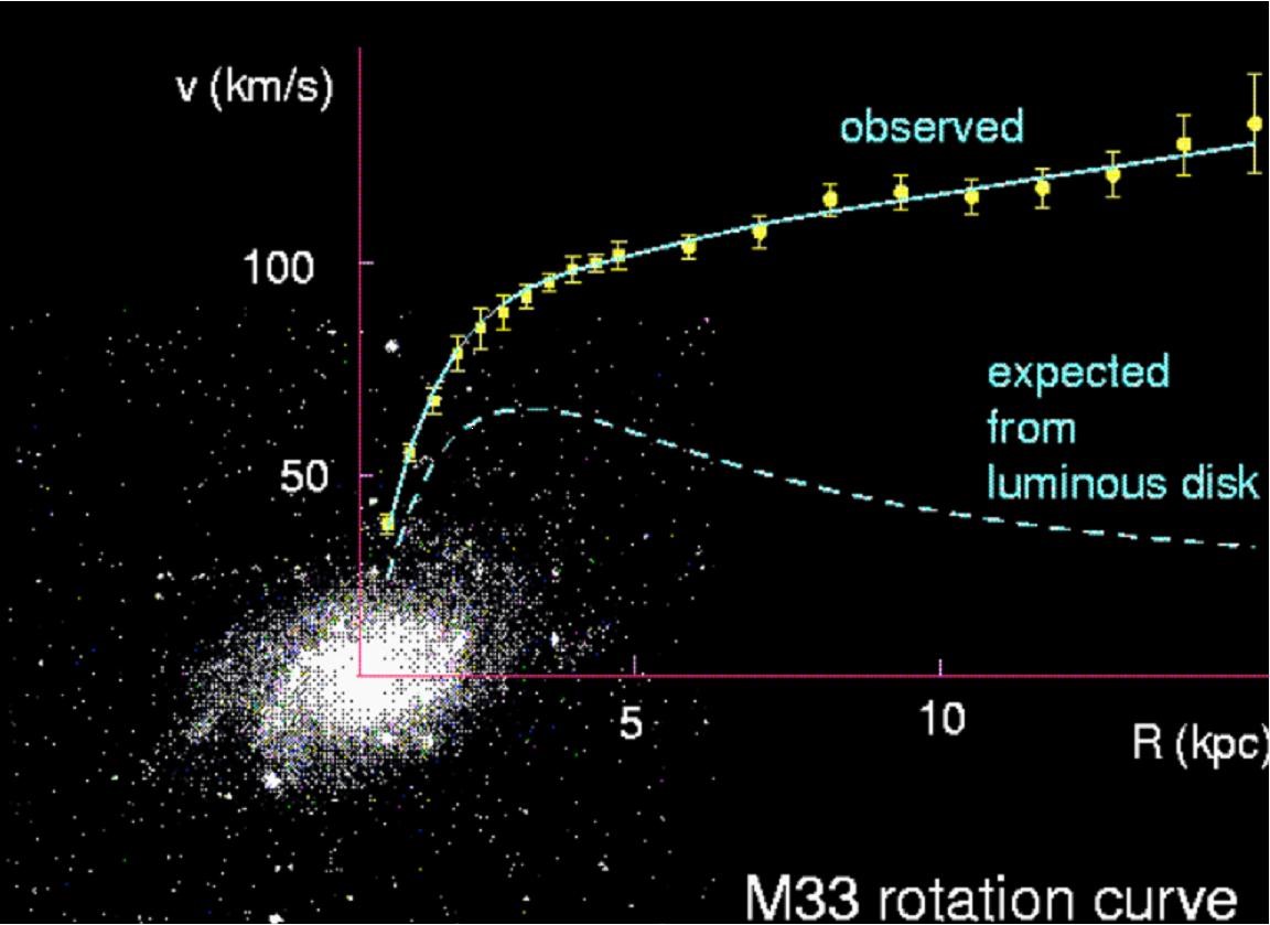 圖8 預(yù)示暗物質(zhì)的存在 — 星系旋轉(zhuǎn)曲線