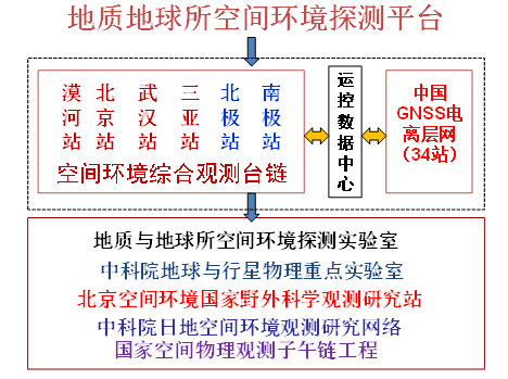 地質(zhì)地球所建立了空間環(huán)境探測平臺,有一個觀測臺鏈,在國內(nèi)最北邊的漠河,往南有北京和武漢,最南邊有三亞等觀測站,另外在北極的黃河站和南極的中山站都建有臺站觀測。目前國內(nèi)通過GPS衛(wèi)星觀測的,已有34個觀測點,地質(zhì)地球所建有數(shù)據(jù)控制中心。